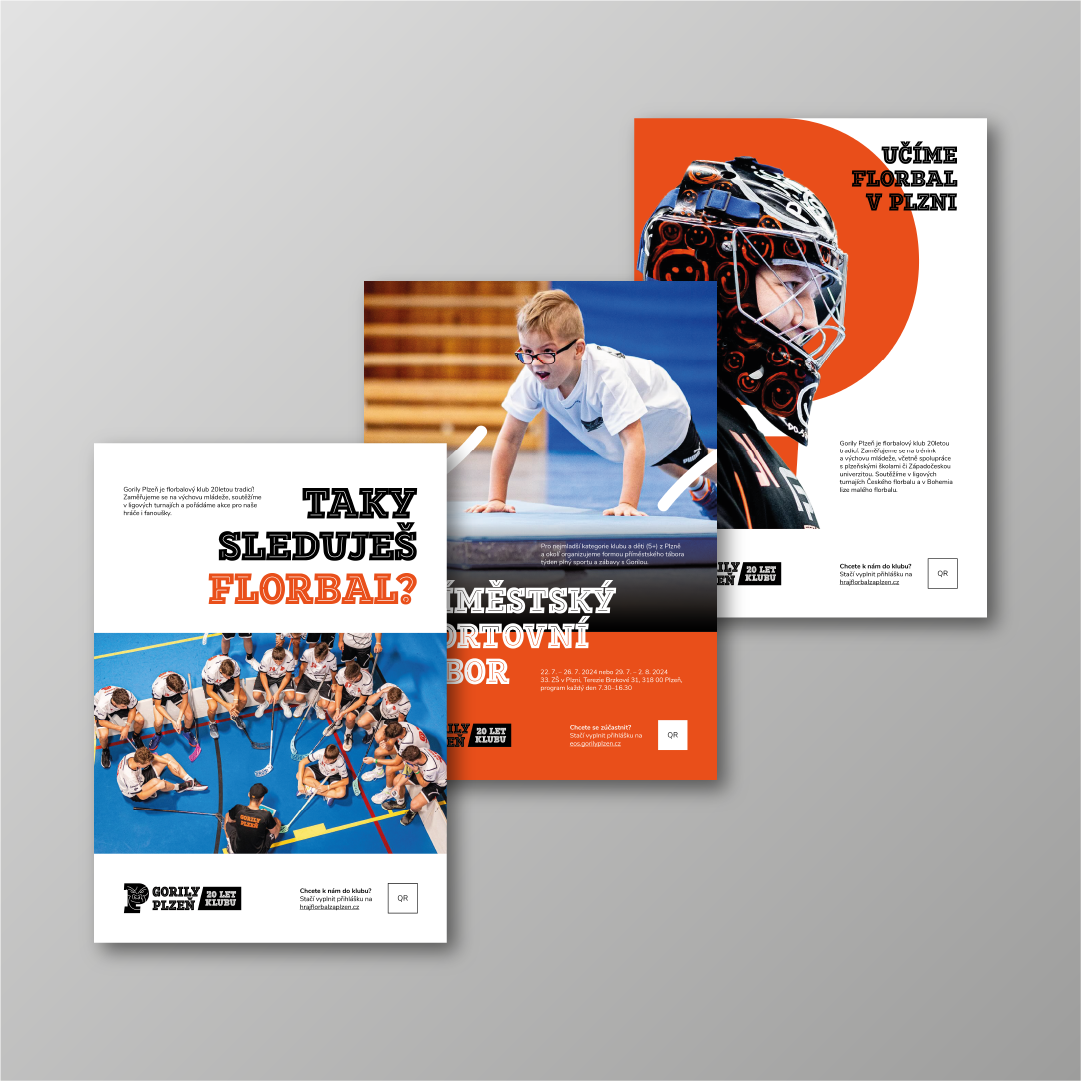 Logo a vizuální styl pro plzeňskou florbalovou školu a sportovní tým.